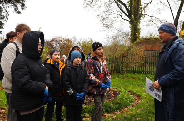 Заведующий мемориально-природным комплексом Владислав Воронцов поделился с ребятами тонкостями правильной посадки луковиц тюльпанов.
