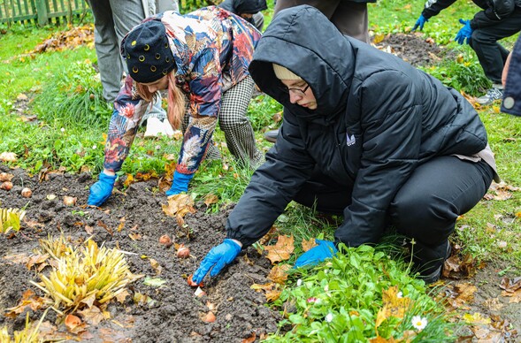 Вклад в яркую весну, 06.11.2025 Несмотря на осеннюю непогоду, Ясную Поляну продолжают украшать. Сотрудники музея совместно с учениками школы имени Льва Николаевича высадили луковицы тюльпанов у флигеля Кузминских. Увидеть цветы можно будет уже следующей весной.