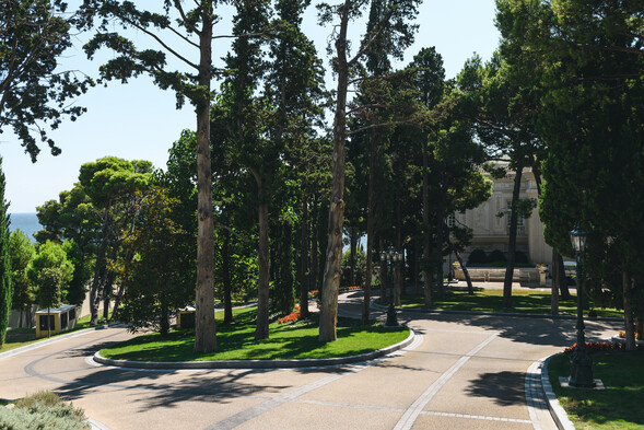 Вершина западного склона усадебного «амфитеатра», например, завершалась «Хаосом» – нагромождением камней, откуда открывался вид на море и окрестности. Здесь были высажены аллепские сосны, банановые пальмы, агавы и юкки. Ниже – небольшая роща ливанских кедров, под ней насыпной холм, усаженный кипарисами – природная беседка, названная «Орхестрой». За ней аллея платанов, немного поодаль – оливковая роща. Главная поперечная аллея была обсажена белыми акациями, глицинией, финиковыми пальмами. К востоку от главного дома были устроены «Дебри» – трёхступенчатый каскад бетонных бассейнов, утопавших в зарослях бамбука и ирисов. Отдельные старые деревья и новые посадки кипарисов, акаций, платанов, ливанских кедров, каменных дубов и пиний были дополнены тропическими экзотами. Всё это будущее великолепие перемежалось небольшими полянками, молодыми кустами сирени и вьющихся роз.